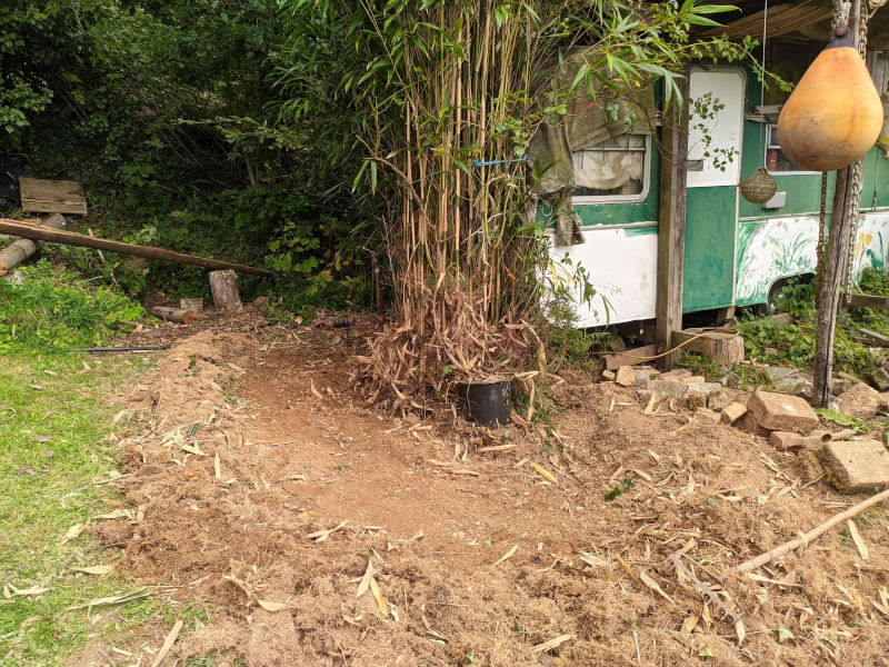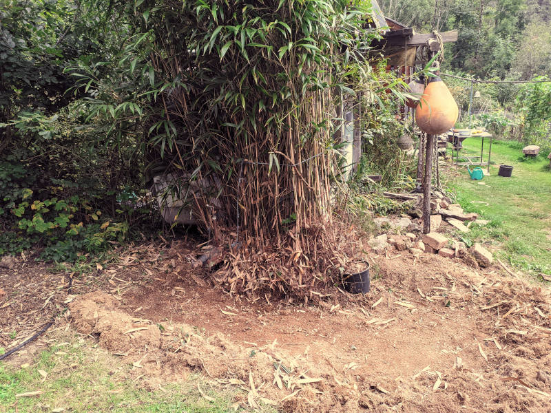 29th Oct 2022 Saw what looked like a 'piece' of grass - a shoot of bamboo. I thought it may be from a bit of root I left in the piles of soil but it was from an underground root.
