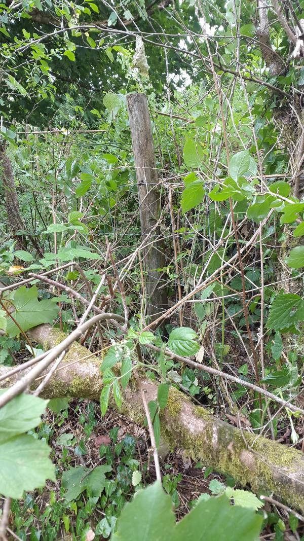 On the boundary argument, here is a picture near where the incident took place. You can see the post in the hedge wall with the wiring on the side indicating that the fence is maintained by users of this land and by inference the wall the post is embedded in belongs to this land. There are other images showing that fencing has been erected on the other side of the stone wall some long time ago.